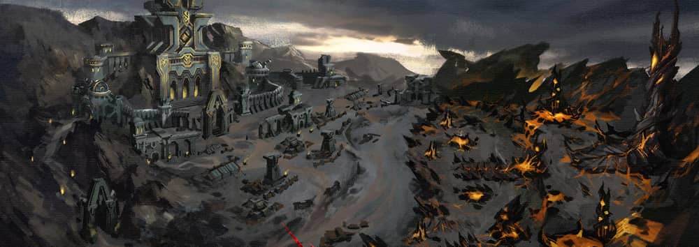 καλυμμένος από καπνό, ρίχνοντας μια κόκκινη λάμψη πάνω από το άγονο έδαφος. Οι οδοντωτοί